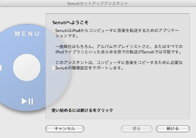 「Senuti」はiPodの中にある音楽やプレイリストを、Macに転送することができるソフト。iPhone/iPod touchへの対応が安定したということで使ってみました。