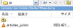 - /private/var/mobile/Media に「Wikipedia」フォルダ作成、その中に「ja」フォルダを新規作成します。パーミッションを777(0777)に。