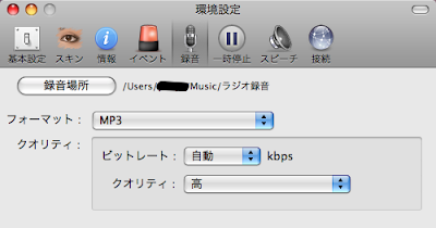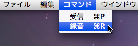 後は、ネットラジオやストリーミング放送を受信している状態で「コマンド > 録音(cmd+R)」、録音を停止する時もここから行います。
