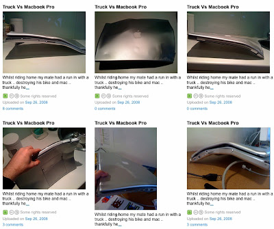 このひしゃげた物体は、自転車に乗っててトラックに轢かれた人の持ってたMacBook Pro。