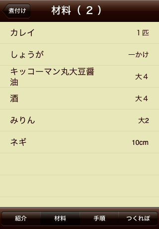 基本的には殆ど差違の無い両者において大きな違いといえば、「CookingPad」(左)はレシピの紹介文や材料表が別々の画面で表示されることと、アイコンの脱力熊がカワイイこと。「CookPad」(右)は、観覧したレシピの履歴が残ることくらいなもんで、要するに殆ど同じです。