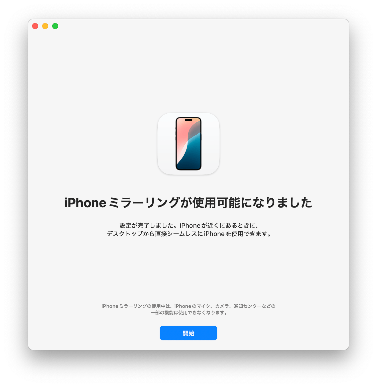 機能名からはiPadの「画面ミラーリング」のような機能を想像させますが、全くの別物で、MacのアプリとしてiPhoneを操作できる機能になります。