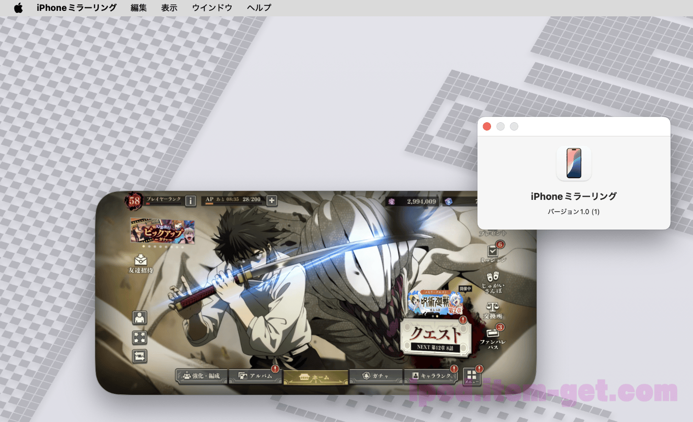 - iPhoneの画面はアプリウィンドウに表示
