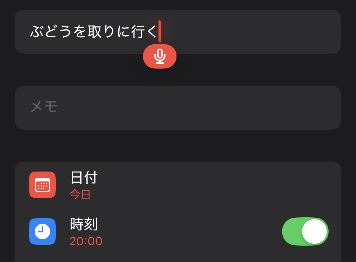 リマインダーの内容を入力して、日付と時刻を設定します。