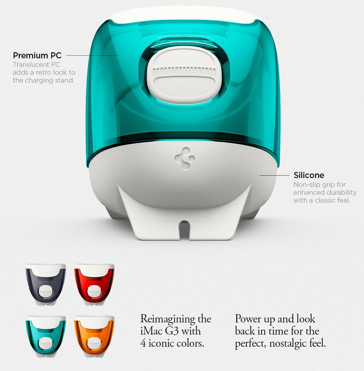スケルトンカラー時代のiMacをモチーフにしたClassic C1 Seriesの1つとして登場したApple Watchスタンドで、iMac G3にインスパイアされたレトロな半透明のデザインが採用され、懐かしさとモダンさを両立させています。