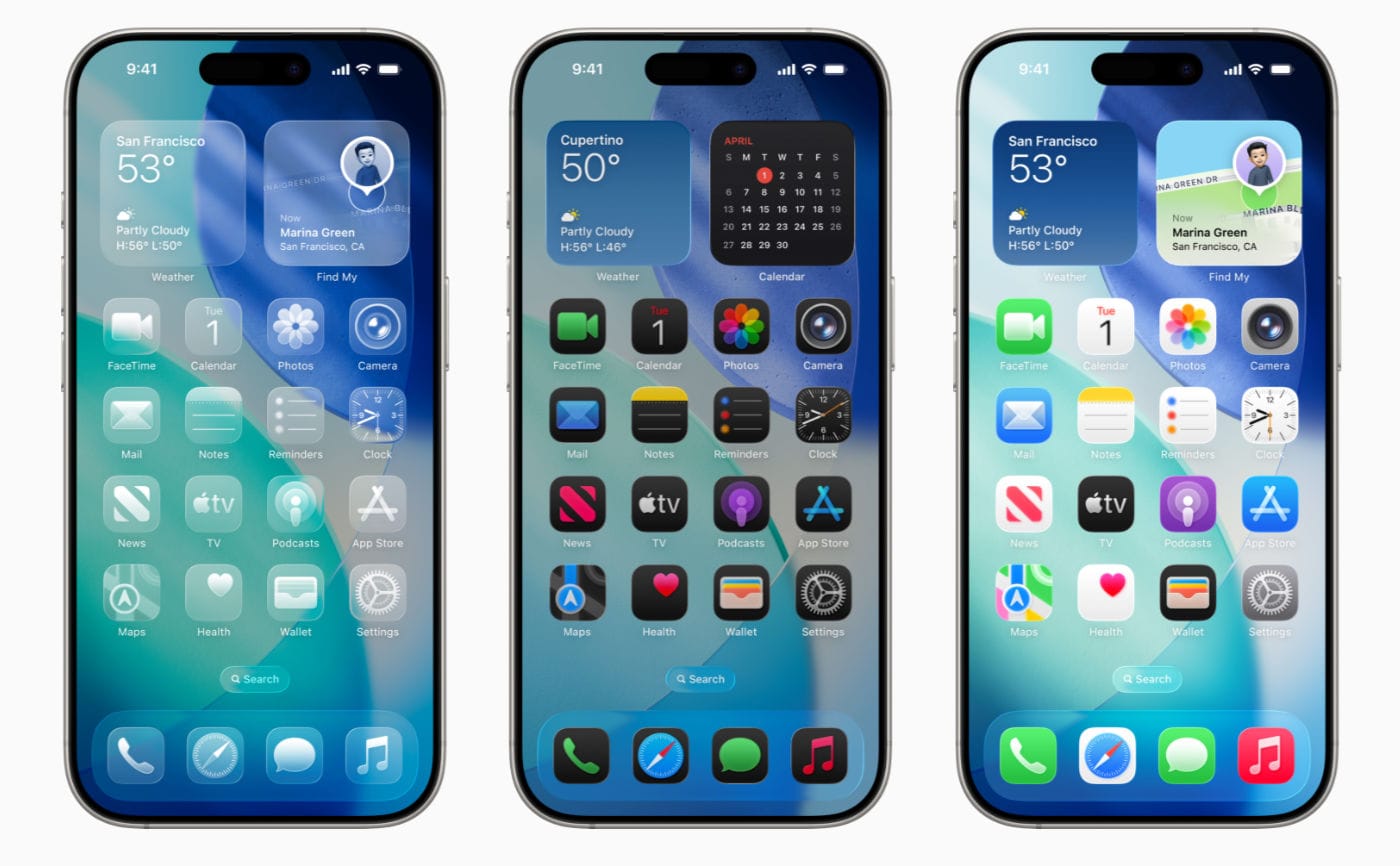 こちらは、WWDC 25の告知バナーのデザインからイベント開始前に連想されていましたが、名前の通り、液体のように滑らかで、まるですりガラスのような半透明の外観を特徴としています。単なる見た目の刷新にとどまらず、各アプリやシステム全体の操作感・表現力の向上にも寄与しています。
